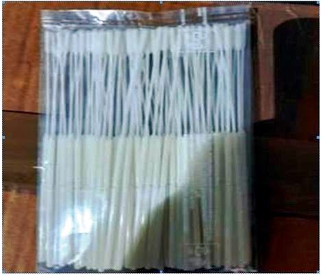 Nasopharyngeal swab is a medical device with stringent specifications of quality, polymer grade, dimensions and sterilization. An NP swab consists of a cylindrical plastic stick with a brush-like tip of synthetic bristles/flocks. The flocking process helps align the fine bristles in a parallel orientation on the stick head, much like a tooth brush, except that this has round uniform geometry and the NP swab bristles are of micron diameter.