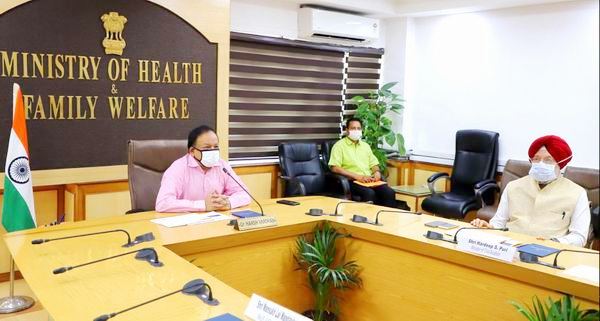 19 was chaired by Dr. Harsh Vardhan Union Minister of Health & Family Welfare via a video-conference, here today. He was joined by Dr S. Jaishankar, Minister of External Affairs, Sh. Hardeep S. Puri Minister of Civil aviation, Sh. Nityananda Rai, Minister of State for Home Affairs Sh. Mansukh Lal Mandaviya Minister of State for Shipping, & Chemical and Fertilizers, and Sh. Ashwini Kumar Choubey Minister of State Health & Family Welfare along with Sh. Bipin Rawat Chief of Defence Staff. The Hon. Members of the GoM and officers participated following norms of physical distancing.