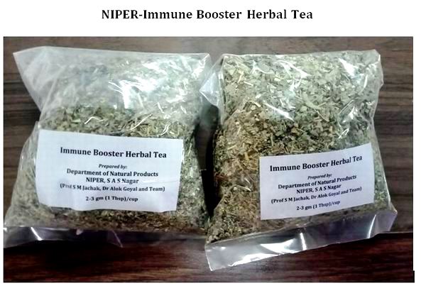As no new effective drug and vaccine is available yet to treat covid-19, it is important for people to have a strong immunity system so that they can fight any kind of infection easily and keep themselves safe. Keeping this in mind department of natural products, NIPER at SAS Nagar, Mohali has developed Immunity booster Herbal tea. This Herbal Tea is aimed at modulating immune response in body so that it may be used as a preventive remedy against covid-19 viral infection.