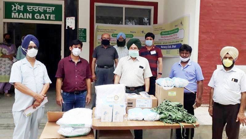 ਨੂੰ ਹੋਰ ਯਕੀਨੀ ਬਨਾਉਣ ਦੇ ਮਕਸਦ ਨਾਲ ਸਿਵਲ ਹਸਪਤਾਲ ਦੇ ਐਸ.ਐਮ.ਓ ਡਾ. ਗੁਰਸ਼ਰਨ ਸਿੰਘ ਨੂੰ ਇੱਕ ਵੈਂਟੀਲੇਟਰ, 25 ਪੀ.ਪੀ.ਈ ਕਿੱਟਾਂ, 1500 ਦੇ ਕਰੀਬ ਮਾਸਕ ਅਤੇ 2 ਇਨਫਰਾਰੈਡ ਥਰਮਾਮੀਟਰ ਭੇਂਟ ਕੀਤੇ ਗਏ।ਐਸ.ਐਮ.ਓ ਡਾ. ਗੁਰਸ਼ਰਨ ਸਿੰਘ ਨੇ ਇਹ ਸਮਾਨ ਲੈ ਕੇ ਪਹੁੰਚੇ ਰੋਟਰੀ ਕਲੱਬ ਦੇ ਪ੍ਰਬੰਧਕਾਂ ਦਾ ਧੰਨਵਾਦ ਕਰਦਿਆਂ ਕਿਹਾ ਕਿ ਸਮਾਜਸੇਵੀ ਸੰਸਥਾਵਾਂ ਦੇ ਅਜਿਹੇ ਉਪਰਾਲਿਆਂ ਨਾਲ ਕੋਰੋਨਾ ਮਹਾਂਮਾਰੀ ਖਿਲਾਫ ਫਰੰਟ ‘ਤੇ ਲੜਣ ਵਾਲੇ ਯੋਧਿਆਂ ਦਾ ਮਨੋਬਲ ਹੋਰ ਉੱਚਾ ਹੁੰਦਾ ਹੈ।ਰੋਟਰੀ ਕਲੱਬ ਦੇ ਪ੍ਰਧਾਨ ਰਜਨੀਸ਼ ਗਰਗ ਨੇ ਕਿਹਾ ਕਿ ਸਿਵਲ ਹਸਪਤਾਲ ਧੂਰੀ ਵਿਖੇ ਵੈਂਟੀਲੇਟਰ ਨਾ ਹੋਣ ਅਤੇ ਧੂਰੀ ਵਿਖੇ ਦਿਨ ਪ੍ਰਤੀਦਿਨ ਕੋਰੋਨਾ ਦੇ ਮਰੀਜ਼ਾਂ ਦੀ ਵੱਧ ਰਹੀ ਗਿਣਤੀ ਕਾਰਨ ਸੰਸਥਾ ਵੱਲੋਂ ਇਹ ਫੈਸਲਾ ਲਿਆ ਗਿਆ ਹੈ।ਉਹਨਾਂ ਕਿਹਾ ਕਿ ਜਰੂਰਤ ਪੈਣ ‘ਤੇ ਹੋਰ ਉਪਕਰਨ ਵੀ ਮੁਹੱਈਆ ਕਰਵਾਏ ਜਾਣਗੇ।