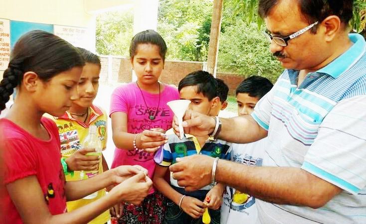 ਸਵਾਲੀਆ ਨਿਸ਼ਾਨ ਲੱਗ ਗਿਆ ਸੀ, ਉਦੋਂ ਸਰਕਾਰੀ ਸਕੂਲਾਂ ਦੇ ਸਿਰੜੀ ਅਧਿਆਪਕਾਂ ਨੇ ਇਸ ਚੁਣੌਤੀ ਨੂੰ ਖਿੜੇ ਮੱਥੇ ਸਵੀਕਾਰ ਕਰਦਿਆਂ ਸਕੂਲੀ ਸਿੱਖਿਆ ਨੂੰ ਆਨਲਾਈਨ ਮਾਧਿਅਮ ਰਾਹੀਂ ਮੁੜ ਲੀਹਾਂ ‘ਤੇ ਵਾਪਸ ਲਿਆਂਦਾ।ਇਨ੍ਹਾਂ ਅਧਿਆਪਕਾਂ ਵਿਚੋਂ ਇੱਕ ਨਾਮ ਸੰਜੀਵ ਸ਼ਰਮਾ ਦਾ ਹੈ, ਜੋ ਕਿ ਸਰਕਾਰੀ ਮਿਡਲ ਸਕੂਲ ਫੰਗਤੋਲੀ ਜਿਲ੍ਹਾ ਪਠਾਨਕੋਟ ਵਿਖੇ ਨਿਯੁੱਕਤ ਹਨ।ਇਸ ਦੇ ਨਾਲ ਹੀ ਜਿਲ੍ਹੇ ਵਿੱਚ ਸਾਇੰਸ ਡੀ.ਐਮ ਦੀ ਜਿੰਮੇਵਾਰੀ ਨਿਭਾਅ ਰਹੇ ਸੰਜੀਵ ਸ਼ਰਮਾ ਵਿਗਿਆਨ ਬਹੁਤ ਹੀ ਰੌਚਕ ਤੇ ਆਸਾਨ ਭਾਸ਼ਾ ਵਿੱਚ ਪੜ੍ਹਾਉਣ ਵਾਲੇ ਅਧਿਆਪਕ ਦੇ ਤੌਰ ‘ਤੇ ਜਾਣੇ ਜਾਂਦੇ ਹਨ।
