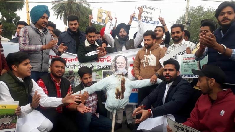 ਵਿਦਿਆਰਥੀ ਜਥੇਬੰਦੀ ਨੈਸ਼ਨਲ ਸਟੂਡੈਂਟ ਯੂਨੀਅਨ ਇੰਡੀਆ ਦੇ ਸੂਬਾ ਪੱਧਰੀ ਅਹੁਦੇਦਾਰਾਂ ਤੇ ਮੈਂਬਰਾਂ ਦੇ ਵੱਲੋਂ ਪੰਜਾਬ ਪ੍ਰਧਾਨ ਅਕਸ਼ੇ ਸ਼ਰਮਾ ਦੀ ਅਗਵਾਈ ‘ਚ ਕਿਸਾਨਾਂ ਦੇ ਹੱਕ ਵਿਚ ਪ੍ਰਧਾਨ ਮੰਤਰੀ ਨਰਿੰਦਰ ਮੌਦੀ ਦੇ ਖਿਲਾਫ ਜੰਮ ਕੇ ਨਾਅਰੇਬਾਜ਼ੀ ਕੀਤੀ ਤੇਪੁਤਲਾ ਫੂਕਿਆ।