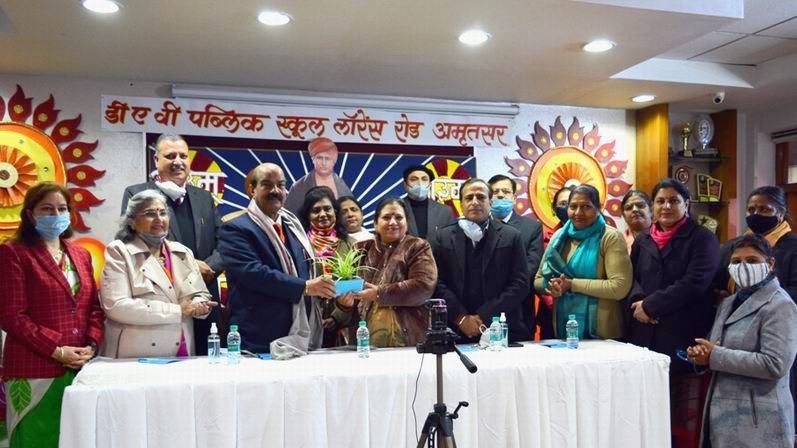 challenges of both online and offline classes, DAV Public Schools Punjab Zone–A organised a meeting at DAV Public School Lawrence Road. Dr. J.P Shoor Director Public School- 1 and Aided Schools DAV CMC New Delhi presided over the meeting. Other worthy guests present were Dr. Neelam Kamra Regional Officer Punjab Zone -A and Dr. Pushpinder Walia Manager of the school. In all 21 principals attended the meeting , out of which 6 were virtually connected through video conferencing.