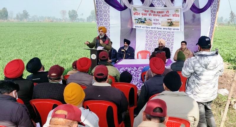 ਕਿਸਾਨਾਂ ਨੂੰ ਸੰਬੋਧਨ ਕਰਦਿਆਂ ਡਾ. ਹਰਤਰਨਪਾਲ ਸਿੰਘ ਨੇ ਕਿਹਾ ਕਿ ਫਸਲਾਂ ਨੂੰ ਖੁਰਾਕ ਦੇਣ ਦੀ ਬਜ਼ਾਏ, ਖੇਤਾਂ ਦੀ ਮਿੱਟੀ ਨੂੰ ਦੇਣੀ ਚਾਹੀਦੀ ਹੈ, ਜਿਸ ਤੋਂ ਫਸਲ ਦੇ ਪੌਦੇ ਖੁਰਾਕ ਲੈਣ।ਉਨਾਂ ਕਿਹਾ ਕਿ ਮਿੱਟੀ ਦੀ ਸਿਹਤ ਸੁਧਾਰਨ ਅਤੇ ਵਾਤਾਵਰਣ ਦੀ ਸ਼ੁੱਧਤਾ ਲਈ ਫਸਲਾਂ ਦੀ ਰਹਿੰਦ ਖੂੰਹਦ ਨੂੰ ਅੱਗ ਲਗਾ ਕੇ ਸਾੜਣ ਜਾਂ ਹਟਾਉਣ ਦੀ ਬਜ਼ਾਏ, ਖੇਤਾਂ ਵਿੱਚ ਮਿਲਾ ਦੇਣੀ ਚਾਹੀਦੀ ਹੈ।ਨਵੀਨਤਮ ਖੇਤੀ ਮਸ਼ੀਨਰੀ ਜਿਵੇਂ ਸੁਪਰ ਸੀਡਰ/ਹੈਪੀਸੀਡਰ ਨਾਲ ਕਣਕ ਦੀ ਬਿਜ਼ਾਈ ਕਰਨ ਨਾਲ ਜਿਥੇ ਨਦੀਨਨਾਸ਼ਕ ਦੀ ਵਰਤੋਂ ਘੱਟ ਹੁੰਦੀ ਹੈ, ਉਥੇ ਵਾਤਾਵਰਣ ਨੂੰ ਸ਼ੁੱਧ ਰੱਖਣ ‘ਚ ਮਦਦ ਮਿਲਦੀ ਹੈ। ਖੇਤੀ ਮਸ਼ੀਨਰੀ ਮਹਿੰਗੀ ਹੋਣ ਕਾਰਨ ਸਮੂਹ ਬਣਾ ਕੇ ਖੇਤੀ ਮਸ਼ੀਨਰੀ ਖ੍ਰੀਦਣੀ ਚਾਹੀਦੀ ਹੈ ਤਾਂ ਜੋ ਖੇਤੀ ਲਾਗਤ ਖਰਚੇ ਘਟਾ ਕੇ ਖੇਤੀ ਤੋਂ ਸ਼ੁੱਧ ਆਮਦਨ ਵਿੱਚ ਵਾਧਾ ਕੀਤਾ ਜਾ ਸਕੇ।