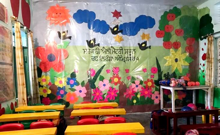 ਸਰਕਾਰੀ ਐਲੀਮੈਂਟਰੀ ਸਮਾਰਟ ਸਕੂਲ ਚਾਹ ਨਿਹੰਗਾਂ ਅਧਿਆਪਕਾ ਸ਼੍ਰੀਮਤੀ ਰਜਵੰਤ ਕੌਰ ਨੇ ਦੱਸਿਆ ਕਿ ਪ੍ਰੀ-ਪ੍ਰਾਇਮਰੀ ਜਮਾਤਾਂ ਵਿੱਚ ਛੋਟੇ ਬੱਚਿਆਂ ਦੀ ਸਿਹਤ ਨੂੰ ਧਿਆਨ ਵਿੱਚ ਰੱਖਦਿਆਂ ਸੈਨੇਟਾਈਜਰ ਸਟੈਂਡ, ਸਾਬਣ, ਤੌਲੀਆ ਸਮੇਤ ਸਿਹਤ ਸੁਰੱਖਿਆ ਦਾ ਧਿਆਨ ਰੱਖਦਿਆਂ ਕਲਾਸ ਰੂਮ ਦੇ ਫਰਸ਼ ‘ਤੇ ਮੈਟਿੰਗ ਕੀਤੀ ਗਈ ਹੈ ਅਤੇ ਦੀਵਾਰਾਂ ਤੇ ਰੰਗਦਾਰ ਤਸਵੀਰਾਂ ਵੀ ਬਣਾਈਆ ਗਈਆਂ ਹਨ।ਉਨ੍ਹਾਂ ਕਿਹਾ ਕਿ ਕਮਰੇ ਵਿੱਚ ਬੱਚਿਆਂ ਲਈ ਹਲਕੀਆਂ ਤੇ ਗਿਆਨ-ਵਧਾਊ ਖੇਡ ਕਿਰਿਆਵਾਂ ਲਈ ਸਹਾਇਕ ਸਮੱਗਰੀ ਸਮੇਤ ਮਜ਼ੇਦਾਰ ਕਹਾਣੀਆਂ ਵਾਲੀਆਂ ਕਿਤਾਬਾਂ, ਜਮਾਤ ਅੰਦਰ ਅੰਗਰੇਜ਼ੀ ਰਾਈਮਜ਼ ਅਤੇ ਜਿੰਗਲ ਕਿਰਿਆਵਾਂ ਵੀ ਕਰਵਾਈਆਂ ਜਾਂਦੀਆਂ ਹਨ।