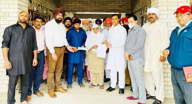ਮਾਹਲ ਖੁਰਦ (ਨਵਾਂਸ਼ਹਿਰ) ਪਿੰਡ ਦੇ ਕਿਸਾਨ ਗੁਰਨੇਕ ਸਿੰਘ ਪੁੱਤਰ ਹੁਕਮ ਸਿੰਘ ਦੇ ਪਰਿਵਾਰ ਮੈਂਬਰਾਂ ਪਤਨੀ ਜਸਵੀਰ ਕੌਰ ਅਤੇ ਪੁੱਤਰ ਰਵਿੰਦਰ ਸਿੰਘ ਨੂੰ ਪੰਜਾਬ ਸਰਕਾਰ ਵੱਲੋਂ ਭੇਜੀ 5 ਲੱਖ ਰੁਪਏ ਦੀ ਮਾਲੀ ਸਹਾਇਤਾ ਦੇ ਚੈਕ ਭੇਟ ਕੀਤਾ।ਜ਼ਿਕਰਯੋਗ ਹੈ ਕਿ ਗੁਰਨੇਕ ਸਿੰਘ ਕੇਂਦਰ ਸਰਕਾਰ ਵੱਲੋਂ ਪਾਸ ਕੀਤੇ ਗਏ ਤਿੰਨ ਕਾਲੇ ਕਾਨੂੰਨਾਂ ਖਿਲਾਫ਼ ਕਿਸਾਨ ਅੰਦੋਲਨ ’ਚ ਸ਼ਾਮਲ ਸੀ।ਅੰਦੋਲਨ ’ਚ ਗੁਰਨੇਕ ਸਿੰਘ ਦੀ ਸਿਹਤ ਖ਼ਰਾਬ ਹੋ ਗਈ, ਜਿਸ ਉਪਰੰਤ ਉਸ ਦੀ ਮੌਤ ਹੋ ਗਈ।