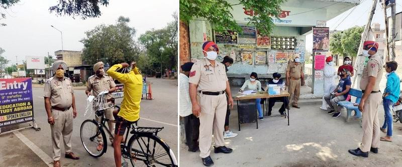 ਕਰਦਿਆਂ ਜ਼ਿਲ੍ਹਾ ਪੁਲਿਸ ਵੱਲੋਂ ਅੱਜ ਜ਼ਿਲ੍ਹੇ ਦੀ ਹਦੂਦ ਅੰਦਰ ਵੱਖ-ਵੱਖ ਮੈਡੀਕਲ ਟੀਮਾਂ ਨੂੰ ਨਾਲ ਲੈ ਕੇ ਜਨਤਕ ਥਾਵਾਂ ’ਤੇ ਬਿਨਾਂ ਮਾਸਕ ਘੁੰਮਣ ਵਾਲੇ 882 ਵਿਅਕਤੀਆਂ ਦੇ ਮੌਕੇ ’ਤੇ ਹੀ ਕੋਵਿਡ ਟੈਸਟ ਕਰਵਾਏ ਗਏ।