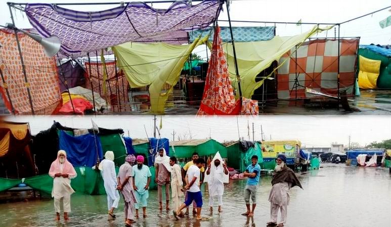 ਅੱਜ ਟਿਕਰੀ ਬਾਰਡਰ ਤੋਂ ਭਾਰਤੀ ਕਿਸਾਨ ਯੂਨੀਅਨ ਏਕਤਾ ਉਗਰਾਹਾਂ ਦੇ ਸੂਬਾ ਮੀਤ ਪ੍ਰਧਾਨ ਜਸਵਿੰਦਰ ਸਿੰਘ ਸੋਮਾ, ਸੂਬਾ ਸਕੱਤਰ ਸ਼ਿੰਗਾਰਾ ਸਿੰਘ ਮਾਨ ਅਤੇ ਸਕੱਤਰ ਹਰਿੰਦਰ ਬਿੰਦੂ ਨੇ ਸਾਂਝਾ ਪ੍ਰੈਸ ਬਿਆਨ ਜਾਰੀ ਕਰਦਿਆਂ ਹੋਇਆਂ ਦੱਸਿਆ ਕਿ ਲਗਾਤਾਰ ਮੀਂਹ ਅਤੇ ਤੂਫਾਨ ਕਾਰਨ ਕਿਸਾਨਾਂ ਦੇ ਬਣਾਏ ਹੋਏ ਆਰਜ਼ੀ ਪੰਡਾਲ ਅਤੇ ਵੱਡਾ ਟੈਂਟ ਪਾਟਣ ਕਾਰਨ ਕਿਸਾਨਾਂ ਦਾ ਕਰੋੜਾਂ ਰੁਪਏ ਦਾ ਨੁਕਸਾਨ ਹੋ ਗਿਆ।ਨੀਵੀਆਂ ਥਾਵਾਂ ਤੇ ਪਾਣੀ ਖੜਣ ਕਾਰਨ ਮੱਛਰ ਤੇ ਹੋਰ ਰੋਗਾਣੂ ਪੈਦਾ ਕਰਨ ਵਾਲੇ ਜੀਵ ਪੈਦਾ ਹੋਣ ਕਾਰਨ ਬੀਮਾਰੀਆਂ ਦਾ ਖਤਰਾ ਵਧ ਜਾਵੇਗਾ।ਪਰ ਇਸ ਦੇ ਬਾਵਜ਼ੂਦ ਵੀ ਲੋਕਾਂ ਦੇ ਹੌਸਲੇ ਬੁਲੰਦ ਹਨ।ਉਨ੍ਹਾਂ ਕਿਹਾ ਕਿ ਹੁਣ ਉਹ ਹਰ ਮੁਸੀਬਤ ਝੱਲਦੇ ਹੋਏ ਆਪਣੀ ਜ਼ਮੀਨ ਦਿਓ ਕੱਦ ਦੇਸੀ ਵਿਦੇਸ਼ੀ ਕੰਪਨੀਆਂ ਦੇ ਮੂੰਹ `ਚੋਂ ਬਚਾਉਣ ਲਈ ਲਗਾਤਾਰ ਸੰਘਰਸ਼ ਕਰਦੇ ਹੋਏ ਕਿਸਾਨ ਤੇ ਮਜ਼ਦੂਰ ਵਿਰੋਧੀ ਕਾਨੂੰਨਾਂ ਨੂੰ ਰੱਦ ਕਰਵਾਉਣ ਲਈ ਘੋਲ ਨੂੰ ਹੋਰ ਤਿੱਖਾ ਕਰਦੇ ਹੋਏ ਕਿਸਾਨਾਂ ਦੀ ਜਿੱਤ ਤੱਕ ਸੰਘਰਸ਼ ਜਾਰੀ ਰੱਖਣਗੇ।