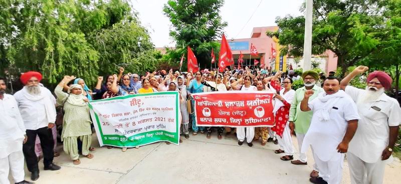 ਅਗਵਾਈ ਵਿਚ ਸੀਟੂ, ਕੁੱਲ ਹਿੰਦ ਖੇਤ ਮਜ਼ਦੂਰ ਯੂਨੀਅਨ ਅਤੇ ਆਂਗਣਵਾੜੀ ਮੁਲਾਜ਼ਮ ਯੂਨੀਅਨ (ਸੀਟੂ) ਦੇ ਸੱਦੇ ਅਨੁਸਾਰ ਵਿਵਾਦਿਤ ਖੇਤੀ ਕਾਨੂੰਨ ਰੱਦ ਕਰਾਉਣ, ਪੈਟਰੋਲ, ਡੀਜ਼ਲ, ਰਸੋਈ ਗੈਸ ਅਤੇ ਖ਼ੁਰਾਕ ਵਸਤਾਂ ਦੀਆਂ ਵਧ ਰਹੀਆਂ ਕੀਮਤਾਂ ਨੂੰ ਨੱਥ ਪਾਉਣ, ਲੋੜਵੰਦਾਂ ਦੇ ਕਰਜ਼ੇ ਮੁਆਫ਼ ਕਰਵਾਉਣ, ਬਿਜਲੀ ਦੇ ਬਿੱਲ ਮੁਆਫ਼ ਕਰਾਉਣ ਲਈ ਧਰਨਾ ਪ੍ਰਦਰਸ਼ਨ ਕੀਤਾ ਗਿਆ।