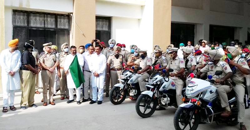 the SBS Nagar Police led by Senior Superintendent of Police (SSP) Sh. Harmanbir Singh Gill IPS launched District Safety Project introducing 23 Hi-tech motor cycles and deployed Police personnel equipped with weapons, wireless set, baton, beat book and other necessary equipment for 24*7 surveillance of the city area in the district. Area of City Nawanshahr has been divided into 10 beats, Banga City 04 beats and Balachaur city 04 beats respectively. SSP Gill also introduced an immediate response help line number 95646-95646. The project was formally launched by MLA Balachaur Chaudhary Darshan Lal Mangupur and SSP Harmanbir Singh Gill at District Police Complex here.