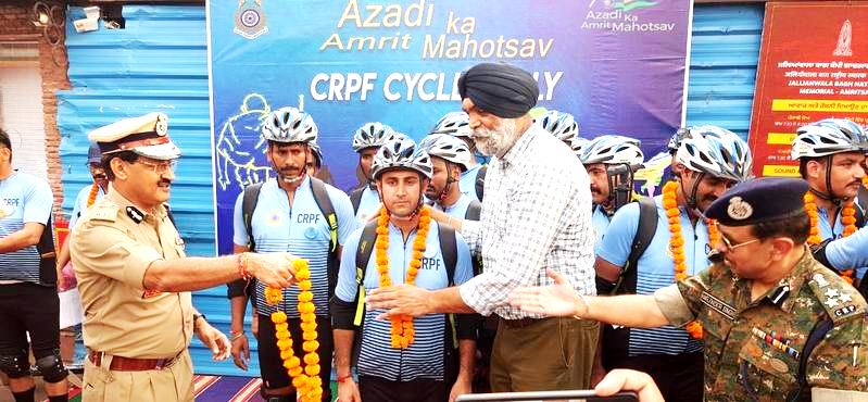 ਅੰਮ੍ਰਿਤਸਰ, 25 ਸਤੰਬਰ (ਸੁਖਬੀਰ ਸਿੰਘ) -ਅਜ਼ਾਦੀ ਦੇ 75ਵੇਂ ਅਜ਼ਾਦੀ ਅਮਰੂਤ ਮਹਾਉਤਸਵ ਨੂੰ ਸਮਰਪਿਤ ਸੀ.ਆਰ.ਪੀ.ਐਫ. ਵੱਲੋਂ ਆਯੋਜਿਤ ਸਾਇਕਲ ਰੈਲੀ