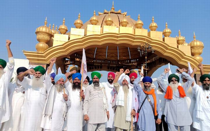 ਅੰਮ੍ਰਿਤਸਰ, 27 ਸਤੰਬਰ (ਸੁਖਬੀਰ ਸਿੰਘ) – ਅੱਜ ਦੇ ਭਾਰਤ ਬੰਦ ਦੌਰਾਨ ਗੁਰੂ ਨਗਰੀ ਦੇ ਪ੍ਰਵੇਸ਼ ਦੁਆਰ ਗੋਲਡਨ ਗੇਟ ਜੀ.ਟੀ ਰੋਡ ਵਿਖੇ ਆਵਾਜਾਈ ਬੰਦ ਕਰਕੇ ਰੋਸ ਪ੍ਰਦਰਸ਼ਨ ਕਰਦੇ ਹੋਏ ਕਿਸਾਨ ਮਜ਼ਦੂਰ ਸੰਘਰਸ਼ ਕਮੇਟੀ ਦੇ ਸਰਵਨ ਸਿੰਘ ਪੰਧੇਰ, ਗੁਰਬਚਨ ਸਿੰਘ ਚੱਬਾ ਅਤੇ ਹੋਰ ਆਗੂ ।