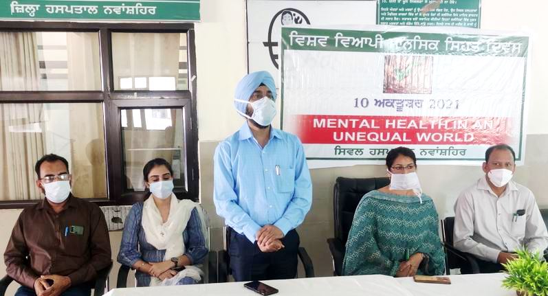 ਸੀਨੀਅਰ ਮੈਡੀਕਲ ਅਫ਼ਸਰ ਡਾ. ਮਨਦੀਪ ਕਮਲ ਦੀ ਯੋਗ ਅਗਵਾਈ ਹੇਠ ਸਿਵਲ ਹਸਪਤਾਲ ਨਵਾਂਸ਼ਹਿਰ ਦੇ ਓਟ ਸੈਂਟਰ ਵਿਖੇ ਅੱਜ ਵਿਸ਼ਵ ਮਾਨਸਿਕ ਸਿਹਤ ਦਿਵਸ ਮਨਾਇਆ ਗਿਆ।ਇਸ ਦਿਨ ਨੂੰ ਮਨਾਉਣ ਦਾ ਮੁੱਖ ਉਦੇਸ਼ ਤਣਾਅ, ਡਿਪਰੈਸ਼ਨ, ਚਿੰਤਾ ਅਤੇ ਫੋਬੀਆ ਵਰਗੀਆਂ ਮਾਨਸਿਕ ਬਿਮਾਰੀਆਂ ਪ੍ਰਤੀ ਲੋਕਾਂ ਨੂੰ ਜਾਗਰੂਕ ਕਰਨਾ ਹੈ।