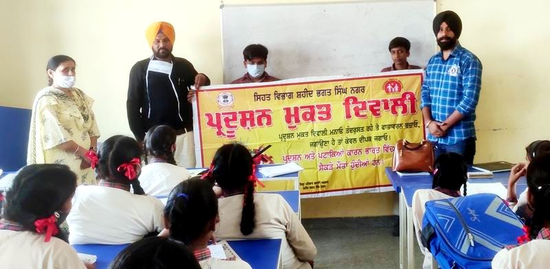 ਕੋਆਰਡੀਨੇਟਰ ਵਿਵਹਾਰ ਪਰਿਵਰਤਨ ਵਲੋਂ ਪ੍ਰਦੂਸ਼ਣ ਅਤੇ ਨਸ਼ਾ ਮੁਕਤ ਦੀਵਾਲੀ ਸੰਬੰਧੀ ਪ੍ਰੋਗਰਾਮ ਸਰਕਾਰੀ ਸੀਨੀਅਰ ਸਕੈਂਡਰੀ ਸਕੂਲ ਚੰਡੀਗੜ੍ਹ ਰੋਡ ਨਵਾਂ ਸ਼ੁਹਿਰ ਵਿਖੇ ਕਰਵਾਇਆ ਗਿਆ।ਜਿਸ ਦੌਰਾਨ ਵਿਦਿਆਰਥੀਆਂ ਨੂੰ ਪਟਾਕਿਆਂ ਤੇ ਧੂੰਆਂ ਫੈਲਾਉਣ ਵਾਲੀ ਸਮੱਗਰੀ ਦਾ ਪ੍ਰਯੋਗ ਨਾ ਕਰਨ ਸਬੰਧੀ ਜਾਣਕਾਰੀ ਦਿੱਤੀ ਗਈ ਅਤੇ ਧੂੰਏਂ ਨਾਲ ਹੋਣ ਵਾਲੀਆਂ ਬਿਮਾਰੀਆਂ ਅਤੇ ਇਸ ਤੋਂ ਹੋਣ ਵਾਲੇ ਹਵਾ ਪ੍ਰਦੂਸ਼ਣ ਬਾਰੇ ਵੀ ਜਾਗਰੂਕ ਕੀਤਾ ਗਿਆ।ਉਨਾਂ ਨੇ ਵਿਦਿਆਰਥੀਆਂ ਨੂੰ ਘਰ ਵਿੱਚ ਬਣਾਈਆਂ ਮਠਿਆਈਆਂ ਦੀ ਵਰਤੋਂ ਕਰਨ ਅਤੇ ਤਲੇ ਹੋਏ ਅਤੇ ਮਿੱਠੇ ਪਦਾਰਥਾਂ ਦੀ ਥਾਂ ਜਿਆਦਾਤਰ ਫਲ-ਫਰੂਟ ਦਾ ਪ੍ਰਯੋਗ ਕਰਨ ਲਈ ਕਿਹਾ।ਪਾਲੀਥੀਨ ਇਧਰ ਉਧਰ ਨਾ ਸੁੱਟਣ ਤੇ ਵਾਤਾਵਰਨ ਨੂੰ ਸਾਫ ਤੇ ਹਰਾ-ਭਰਾ ਰੱਖਣ ਸਬੰਧੀ ਪ੍ਰੇਰਿਤ ਕੀਤਾ ਗਿਆ।ਵਰਤੇ ਹੋਏ ਖਾਲੀ ਪਾਲੀਥੀਨ ਇਧਰ ਉਧਰ ਬਿਖੇਰਨ ਦੀ ਥਾਂ ਪਲਾਸਟਿਕ ਦੀਆਂ ਖਾਲੀ ਬੋਤਲਾਂ ਵਿੱਚ ਭਰ ਕੇ ਰੱਖਣ ਲਈ ਵੀ ਪ੍ਰੇਰਿਤ ਤਾਂ ਕਿ ਉਸ ਨੂੰ ਮੁੜ ਰਿਸਾਈਕਿਲ ਕਰਕੇ ਵਰਤੋਂ ਵਿਚ ਲਿਆਂਦਾ ਜਾ ਸਕੇ।ਉਨਾਂ ਨੇ ਵਿਦਿਆਰਥੀਆਂ ਨੂੰ ਕਿਹਾ ਕਿ ਗੁਆਂਢ ਅਤੇ ਘਰਾਂ ਦੇ ਵਿੱਚ ਜੇਕਰ ਕੋਈ ਤਿਉਹਾਰਾਂ ਸਮੇਂ ਸ਼ਰਾਬ ਜਾਂ ਹੋਰ ਨਸ਼ਿਆਂ ਦੀ ਵਰਤੋਂ ਕਰਕੇ ਤਿਉਹਾਰ ਮਨਾਉਣ ਦੀ ਕੋਸ਼ਿਸ਼ ਕਰਦਾ ਹੈ ਤਾਂ ਉਸ ਨੂੰ ਅਜਿਹਾ ਨਾ ਕਰਨ ਲਈ ਪ੍ਰੇਰਿਤ ਕੀਤਾ ਜਾਵੇ ਤਾਂ ਜੋ ਦੀਵਾਲੀ ਸਿਹਤਮੰਦ ਅਤੇ ਨਸ਼ਾ ਮੁਕਤ ਹੋ ਕੇ ਮਨਾਈ ਜਾ ਸਕੇ।