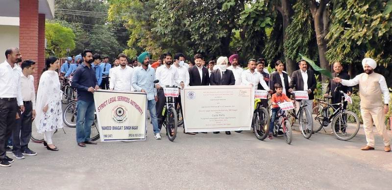 ਕੌਮੀ ਕਾਨੂੰਨੀ ਸੇਵਾਵਾਂ ਅਥਾਰਟੀ ਦੇ ਦਿਸ਼ਾ ਨਿਰਦੇਸ਼ਾਂ ਤਹਿਤ ਪੰਜਾਬ ਰਾਜ ਕਾਨੂੰਨੀ ਸੇਵਾਵਾਂ ਅਥਾਰਟੀ ਐਸ.ਏ.ਐਸ ਨਗਰ ਅਤੇ ਮਾਨਯੋਗ ਜਿਲ੍ਹਾ ਅਤੇ ਸੈਸਨ ਜੱਜ-ਕਮ-ਚੇਅਰਮੈਨ ਜਿਲ੍ਹਾ ਕਾਨੂੰਨੀ ਸੇਵਾਵਾਂ ਅਥਾਰਟੀ ਸ਼ਹੀਦ ਭਗਤ ਸਿੰਘ ਨਗਰ ਸ. ਕੰਵਲਜੀਤ ਸਿੰਘ ਬਾਜਵਾ ਦੀਆਂ ਹਦਾਇਤਾਂ ‘ਤੇ ਪੈਨ ਇੰਡੀਆ ਤਹਿਤ ਮਾਣਯੋਗ ਸੀ.ਜੇ.ਐਮ-ਕਮ-ਸਕੱਤਰ ਜਿਲ੍ਹਾ ਕਾਨੂੰਨੀ ਸੇਵਾਵਾਂ ਅਥਾਰਟੀ ਸ਼ਹੀਦ ਭਗਤ ਸਿੰਘ ਨਗਰ ਮੈਡਮ ਹਰਪ੍ਰੀਤ ਕੌਰ ਦੀ ਅਗਵਾਈ ਹੇਠ ਦਫਤਰੀ ਸਟਾਫ ਮੈਬਰ, ਪੈਰਾ ਲੀਗਲ ਵਲੰਟੀਅਰਾਂ, ਸਰਕਾਰੀ ਸੀਨੀਅਰ ਸੰਕੈਡਰੀ ਸਕੂਲ, ਸ.ਭ.ਸ ਨਗਰ ਅਤੇ ਖਾਲਸਾ ਸੀਨੀਅਰ ਸੰਕੈਡਰੀ ਸਕੂਲ, ਸ.ਭ.ਸ ਨਗਰ ਦੇ ਬੱਚਿਆਂ ਵਲੋਂ ਆਮ ਲੋਕਾਂ ਵਿੱਚ ਮੁਫਤ ਕਾਨੂੰਨੀ ਸਹਾਇਤਾ ਬਾਰੇ ਜਾਗਰੂਕਤਾ ਪੈਦਾ ਕਰਨ ਲਈ ਸਾਈਕਲ ਰੈਲੀ ਕੱਢੀ ਗਈ।