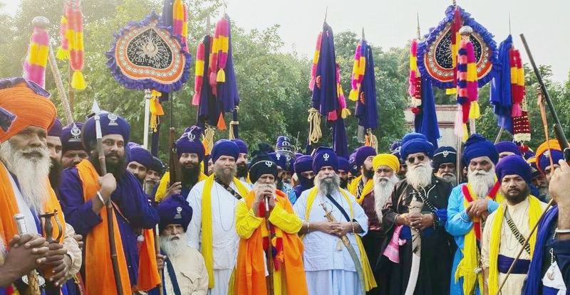 ਨਿਹੰਗ ਸਿੰਘਾਂ ਦੇ ਨੱਚਦੇ ਘੋੜਿਆਂ ਦੇ ਨਾਲ ਢੋਲ ਨਗਾਰਿਆਂ ਤੇ ਨਰਸਿੰਙਿਆਂ ਨੇ ਖਿੱਚਿਆ ਧਿਆਨ