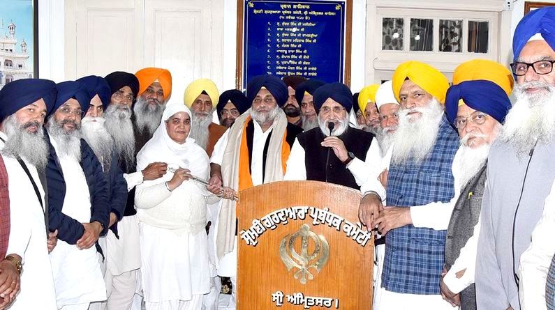 ਅੰਮ੍ਰਿਤਸਰ, 28 ਨਵੰਬਰ (ਜਗਦੀਪ ਸਿੰਘ) – ਸ਼੍ਰੋਮਣੀ ਕਮੇਟੀ ਮੈਂਬਰਾਂ ਦੀ ਇਕੱਤਰਤਾ ਦੌਰਾਨ ਸੁਖਬੀਰ ਸਿੰਘ ਬਾਦਲ ਪ੍ਰਧਾਨ ਸ਼੍ਰੋਮਣੀ ਅਕਾਲੀ ਦਲ ਨੂੰ ਸਨਮਾਨਿਤ ਕਰਦੇ ਹੋਏ ਸ਼੍ਰੋਮਣੀ ਕਮੇਟੀ ਪ੍ਰਧਾਨ ਬੀਬੀ ਜਗੀਰ ਕੌਰ ਅਤੇ ਹੋਰ ਅਹੁੱਦੇਦਾਰ।