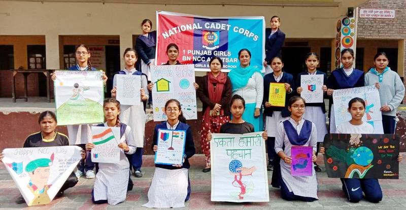 ਵਿਖੇ ਐਨ.ਸੀ.ਸੀ ਦਿਵਸ ਮਨਾਇਆ ਗਿਆ।ਪ੍ਰੋਗਰਾਮ ਦੀ ਸ਼ੁਰੂਆਤ ਭਗਤੀ ਗੀਤ ਨਾਲ ਕੀਤੀ ਗਈ।ਸਕੂਲ ਪ੍ਰਿਸੰੀਪਲ ਸ੍ਰੀਮਤੀ ਪੁਨੀਤ ਕੌਰ ਨਾਗਪਾਲ ਦੇ ਸਹਿਯੋਗ ਨਾਲ ਮਨਾਏ ਗਏ ਇਸ ਪ੍ਰੋਗਰਾਮ ਮੌਕੇ ਐਨ.ਸੀ.ਸੀ ਕੈਡਿਟਾਂ ਨੇ ਪੋਸਟਰ ਮੇਕਿੰਗ ਮੁਕਾਬਲਿਆਂ ’ਚ ਉਤਸ਼ਾਹ ਨਾਲ ਹਿੱਸਾ ਲਿਆ ਗਿਅ।ਪ੍ਰਿੰ: ਨਾਗਪਾਲ ਨੇ ਵਿਦਿਆਰਥਣਾਂ ਨੂੰ ਐਨ.ਸੀ.ਸੀ ਦਿਵਸ ਦੀ ਮਹੱਤਤਾ ਬਾਰੇ ਵਿਸਥਾਰਪੂਰਵਕ ਜਾਣਕਾਰੀ ਦਿੱਤੀ।