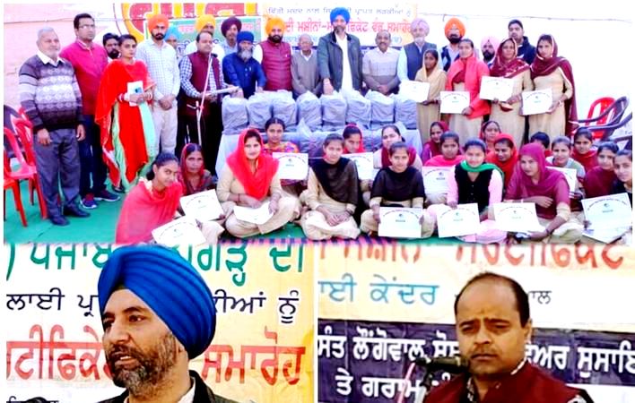 ਗਰੀਬ ਤੇ ਲੋੜਵੰਦ ਲੜਕੀਆਂ ਨੂੰ ਸਿਲਾਈ ਕਟਾਈ ਦੀ ਟਰੇਨਿੰਗ ਦੇਣ ਲਈ ਚਲਾਏ ਜਾ ਰਹੇ ਸਿਲਾਈ ਕੇਂਦਰ ‘ਚ ਟਰੇਨਿੰਗ ਪੂਰੀ ਹੋਣ ਉਪਰੰਤ ਸਿਲਾਈ ਮਸ਼ੀਨਾਂ ਦੀ ਵੰਡ ਸਬੰਧੀ ਸਮਾਗਮ ਪ੍ਰੋਜੈਕਟ ਕੋਆਰਡੀਨੇਟਰ ਪ੍ਰਿੰਸੀਪਲ ਸੁਖਦਰਸ਼ਨ ਸਿੰਘ ਢਿੱਲੋਂ ਦੀ ਦੇਖ ਰੇਖ ਹੇਠ ਕਰਵਾਇਆ ਗਿਆ।ਜਿਸ ਵਿੱਚ ਸੁਸਾਇਟੀ ਦੇ ਸਰਪ੍ਰਸਤ ਵਿਨਰਜੀਤ ਗੋਲਡੀ ਖਡਿਆਲ ਨੇ ਵਿਸ਼ੇਸ਼ ਤੌਰ ਤੇ ਸਮੂਲੀਅਤ ਕੀਤੀ ਤੇ ਸਮਾਗਮ ਦੀ ਪ੍ਰਧਾਨਗੀ ਹਰਪਾਲ ਸਿੰਘ ਖਡਿਆਲ ਨੇ ਕੀਤੀ।ਸ੍ਰੀ ਗੁਰੂ ਤੇਗ ਬਹਾਦਰ ਜੀ ਦੇ ਬਲਿਦਾਨ ਦਿਵਸ ਮੌਕੇ ਸਵ. ਅਨਿਲ ਕੁਮਾਰ ਗੋਇਲ ਦੀ ਨਿੱਘੀ ਯਾਦ ਨੂੰ ਸਮਰਪਿਤ ਇਸ ਸਮਾਗਮ ਦੌਰਾਨ ਬੋਲਦਿਆਂ ਸੁਸਾਇਟੀ ਦੇ ਪ੍ਰਧਾਨ ਪਰਮਿੰਦਰ ਕੁਮਾਰ ਲੌਂਗੋਵਾਲ ਨੇ ਕਿਹਾ ਕਿ ਸੁਸਾਇਟੀ ਵਲੋਂ ਸੰਤ ਲੌਂਗੋਵਾਲ ਸੋਚ ਤੇ ਪਹਿਰਾ ਦਿੰਦੇ ਹੋਏ ਸਮਾਜ ਦੇ ਲੋੜਵੰਦ ਲੋਕਾਂ ਦੀ ਮਦਦ ਕਰਨ ਦਾ ਯਤਨ ਕੀਤਾ ਜਾ ਰਿਹਾ ਹੈ।ਉਹਨਾਂ ਸੁਸਾਇਟੀ ਵਲੋਂ ਲੜਕੀਆਂ ਦੀ ਕਿੱਤਾ ਮੁੱਖੀ ਸਿੱਖਿਆ ਲਈ ਕੀਤੇ ਜਾ ਰਹੇ ਯਤਨਾਂ ਬਾਰੇ ਦੱਸਿਆ।ਪ੍ਰਿੰਸੀਪਲ ਸੁਖਦਰਸ਼ਨ ਸਿੰਘ ਢਿੱਲੋਂ ਨੇ ਮੌਜ਼ੂਦਾ ਸਮੇਂ ‘ਚ ਔਰਤਾਂ ਵਲੋਂ ਸਮਾਜ ਦੀ ਬਿਹਤਰੀ ਲਈ ਕੀਤੇ ਜਾ ਰਹੇ ਸ਼ੰਘਰਸ਼ ਦੀ ਗੱਲ ਕਰਦਿਆਂ ਕਿਹਾ ਕਿ ਸਮਾਜ ਦੀ ਤਰੱਕੀ ਲਈ ਔਰਤਾਂ ਦੀ ਤਰੱਕੀ, ਸੁਰੱਖਿਆ, ਰੁਜ਼ਗਾਰ ਬਹੁਤ ਜਰੂਰੀ ਹੈ।ਸੁਸਾਇਟੀ ਦੇ ਜਨਰਲ ਸਕੱਤਰ ਸ਼ਿਸਨ ਕੁਮਾਰ, ਸਰਬਜੀਤ ਸਿੰਘ ਲੱਡੀ, ਬਾਬਾ ਕਰਨੈਲ ਸਿੰਘ ਨੇ ਲੜਕੀਆਂ ਨੂੰ ਮਿਹਨਤ ਕਰਕੇ ਸਮਾਜ ਵਿੱਚ ਆਪਣਾ ਤੇ ਆਪਣੇ ਮਾਪਿਆਂ ਦਾ ਸਤਿਕਾਰ ਵਧਾਉਣ ਦੀ ਗੱਲ ਕਹੀ।