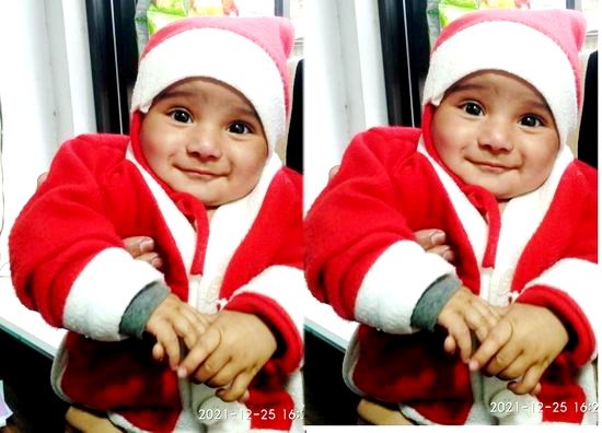 ਅੰਮ੍ਰਿਤਸਰ, 25 ਦਸੰਬਰ (ਜਗਦੀਪ ਸਿੰਘ) – ਕ੍ਰਿਸ਼ਮਸ ਦੇ ਸ਼ੁੱਭ ਅਵਸਰ ‘ਤੇ ਸਾਂਤਾ ਕਲਾਜ਼ ਦੀ ਵੇਸ਼ ਭੂਸ਼ਾ ‘ਚ ਸੱਜੀ ਨੰਨ੍ਹੀ ਬੱਚੀ ਦਿਵਿਆਂਸ਼।