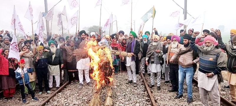 ਰੇਲ ਰੋਕੋ ਅੰਦੋਲਨ ਦੇ 7ਵੇਂ ਦਿਨ ਰੇਲਵੇ ਟਰੈਕ ‘ਤੇ ਸਾੜੀ ਕੇਂਦਰੀ ਖੇਤੀਬਾੜੀ ਮੰਤਰੀ ਤੋਮਰ ਦੀ ਅਰਥੀ