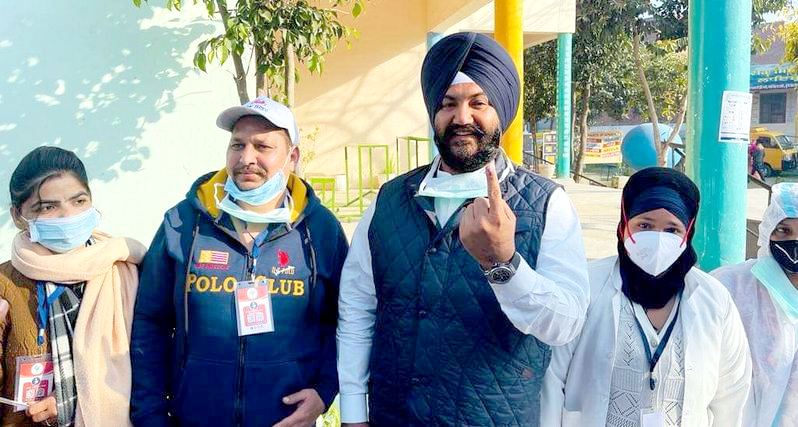 ਅੰਮ੍ਰਿਤਸਰ, 20 ਫਰਵਰੀ (ਸੁਖਬੀਰ ਸਿੰਘ) – ਅੱਜ ਆਪਣੀ ਵੋਟ ਪਾਉਣ ਤੋਂ ਬਾਅਦ ਉਂਗਲ ‘ਤੇ ਲੱਗਾ ਨਿਸ਼ਾਨ ਦਿਖਾਉਂਦੇ ਹੋਏ ਸਥਾਨਕ ਹਲਕਾ ਦੱਖਣੀ ਤੋਂ ਅਕਾਲੀ ਬਸਪਾ ਉਮਦੀਵਾਰ ਤਲਬੀਰ ਸਿੰਘ ਗਿੱਲ ।