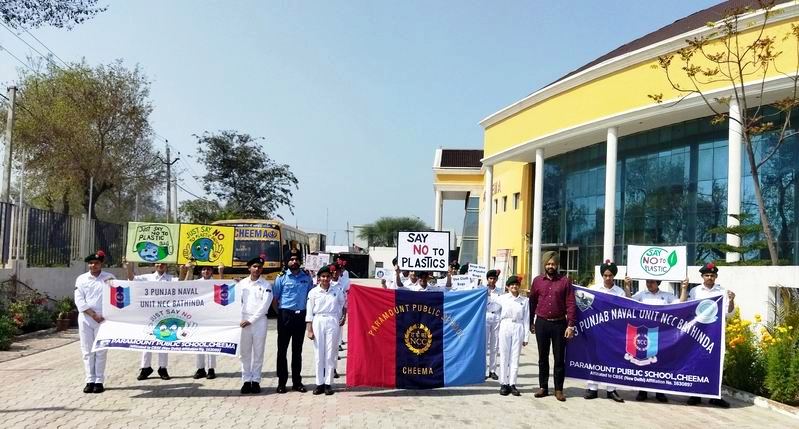 ਕੈਪਟਨ ਅਰਵਿੰਦ ਕੁਮਾਰ ਪਵਾਰ ਦੇ ਦਿਸ਼ਾ ਨਿਰਦੇਸ਼ਾਂ ਅਨੁਸਾਰ ਇੱਕ ਵਾਰ ਵਰਤੋਂ ਵਿੱਚ ਆਉਣ ਵਾਲੀਆਂ ਪਲਾਸਟਿਕ ਦੀਆਂ ਚੀਜ਼ਾਂ ਦੇ ਵਿਰੋਧ ਵਿੱਚ ਚੇਤਨਾ ਮਾਰਚ ਅਤੇ ਸਫ਼ਾਈ ਅਭਿਆਨ ਚਲਾਇਆ ਗਿਆ।ਰੈਲੀ ਨੂੰ ਸੰਬੋਧਨ ਕਰਦਿਆਂ ਸਕੂਲ ਦੇ ਪ੍ਰਬੰਧਕ ਜਸਵੀਰ ਸਿੰਘ ਚੀਮਾਂ ਨੇ ਬੱਚਿਆਂ ਦੀ ਇਸ ਪਹਿਲਕਦਮੀ ਦੀ ਸ਼ਲਾਘਾ ਕੀਤੀ।ਇਹ ਚੇਤਨਾ ਮਾਰਚ ਸਥਾਨਕ ਸ਼ਹਿਰ ਦੇ ਵੱਖ-ਵੱਖ ਬਜ਼ਾਰਾਂ ‘ਚੋਂ ਹੁੰਦਾ ਹੋਇਆ ਸਕੂਲ ਵਾਪਸ ਪਹੁੰਚਿਆ।ਬੱਚਿਆਂ ਨੇ ਆਪਣੇ ਹੱਥਾਂ ਵਿੱਚ ਬੈਨਰ ਅਤੇ ਤਖਤੀਆਂ ‘ਤੇ ਜਾਗਰੂਕਤਾ ਸੁਨੇਹਾ ਲਿਖ ਕੇ ਲੋਕਾਂ ਨੂੰ ਅਗਾਹ ਕੀਤਾ।ਸਥਾਨਕ ਸ਼ਹਿਰ ਦੇ ਗੁਰਦੁਆਰਾ ਸਾਹਿਬ ਜਨਮ ਅਸਥਾਨ ਸੰਤ ਬਾਬਾ ਅਤਰ ਸਿੰਘ ਵਿਖੇ ਸਫ਼ਾਈ ਅਭਿਆਨ ਚਲਾਇਆ ਗਿਆ।ਬੱਚਿਆਂ ਨੇ ਲੋਕਾਂ ਨੂੰ ਇੱਕ ਵਾਰ ਵਰਤੋਂ ਵਿੱਚ ਆਉਣ ਵਾਲੇ ਪਲਾਸਟਿਕ ਦੇ ਨੁਕਸਾਨ ਬਾਰੇ ਦੱਸਿਆ।