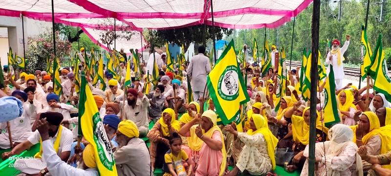 ਸੰਗਰੂਰ, 31 ਮਾਰਚ (ਜਗਸੀਰ ਲੌਂਗੋਵਾਲ) – ਭਾਰਤੀ ਕਿਸਾਨ ਯੂਨੀਅਨ ਏਕਤਾ ਉਗਰਾਹਾਂ ਨੇ ਛਾਜ਼ਲੀ ਰੇਲਵੇ ਸਟੇਸ਼ਨ ‘ਤੇ ਧਰਨਾ ਲਾ ਕੇ ਜੋਰਦਾਰ ਮੰਗ ਕੀਤੀ ਕਿ