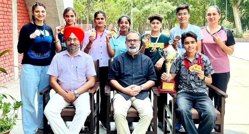 ਅੰਮ੍ਰਿਤਸਰ, 13 ਮਈ (ਖੁਰਮਣੀਆਂ) ਗੁਰੂ ਨਾਨਕ ਦੇਵ ਯੂਨੀਵਰਸਿਟੀ ਦੇ ਖੇਡ ਵਿਭਾਗ ਵੱਲੋਂ ਕਰਵਾਈ ਗਈ ਗੁਰੂ ਨਾਨਕ ਦੇਵ ਯੂਨੀਵਰਸਿਟੀ ਅੰਤਰ-ਕਾਲਜ ਪੈਨਕੈਕ ਸਿਲੇਟ ਚੈਂਪੀਅਨਸ਼ਿਪ-2022 ਦੌਰਾਨ ਪੁਰਸ਼ ਅਤੇ ਮਹਿਲਾ ਵਰਗ ਵਿੱਚ ਗੁਰੂ ਨਾਨਕ ਦੇਵ ਯੂਨੀਵਰਸਿਟੀ ਕੈਂਪਸ ਦੀਆਂ ਪੈਨਕੈਕ ਸਿਲੇਟ (ਪੁਰਸ਼ ਅਤੇ ਮਹਿਲਾ) ਟੀਮਾਂ ਨੇ ਓਵਰਆਲ ਚੈਂਪੀਅਨਸ਼ਿਪ ਜਿੱਤ ਲਈਆਂ।ਇਸ ਅੰਤਰ ਕਾਲਜ ਚੈਂਪੀਅਨਸ਼ਿਪ ਵਿੱਚ ਵੱਖ-ਵੱਖ ਕਾਲਜਾਂ ਅਤੇ ਕੈਂਪਸ ਦੇ ਪੈਨਕੈਕ ਸਿਲੇਟ ਖਿਡਾਰੀਆਂ ਨੇ ਵੱਡੀ ਗਿਣਤੀ ਵਿੱਚ ਭਾਗ ਲਿਆ।