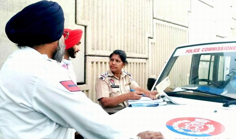 ਪਹੀਆ ਤੇ ਚਾਰ ਵਾਹਣ ਚਾਲਕਾਂ ਦੇ ਚਲਾਨ ਕੱਟਦੇ ਹੋਏ ਟਰੈਫਿਕ ਪੁਲਿਸ ਇੰਸਪੈਕਟਰ ਸ਼੍ਰੀਮਤੀ ਪ੍ਰਵੀਨ ਕੁਮਾਰੀ।ਇਸ ਸਮੇਂ ਟਰੈਫਿਕ ਪੁਲਿਸ ਮੁਲਾਜ਼ਮ ਏ.ਐਸ.ਆਈ ਜਰਨੈਲ ਸਿੰਘ, ਏ.ਐਸ.ਆਈ ਸੁਖਦੇਵ ਸਿੰਘ, ਏ.ਐਸ.ਆਈ ਸੁਰਿੰਦਰਪਾਲ ਸਿੰਘ ਅਤੇ ਹੌਲਦਾਰ ਵਰਿੰਦਰਪਾਲ ਸਿੰਘ ਵੀ ਮੌਜ਼ੂਦ ਸਨ।