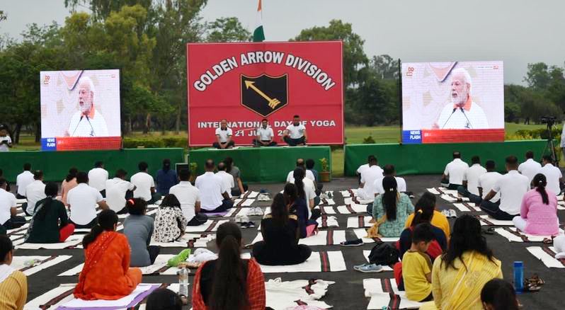 ਵਿਖੇ `ਮਨੁੱਖਤਾ ਲਈ ਯੋਗ` ਵਿਸ਼ੇ `ਤੇ 8ਵਾਂ ਅੰਤਰਰਾਸ਼ਟਰੀ ਯੋਗ ਦਿਵਸ ਮਨਾਇਆ।ਸਾਰੇ ਰੈਂਕਾਂ ਅਤੇ ਉਨ੍ਹਾਂ ਦੇ ਪਰਿਵਾਰਾਂ ਲਈ ਸਰੀਰਕ, ਮਾਨਸਿਕ, ਭਾਵਨਾਤਮਕ ਅਤੇ ਅਧਿਆਤਮਿਕ ਸਿਹਤ ਨੂੰ ਬਿਹਤਰ ਬਣਾਉਣ ਲਈ ਆਸਣ, ਪ੍ਰਾਣਾਯਾਮ ਅਤੇ ਧਿਆਨ ਸੈਸ਼ਨਾਂ ਸਮੇਤ ਆਮ ਯੋਗਾ ਪ੍ਰੋਟੋਕੋਲ ਕਰਵਾਏ ਗਏ।ਅੱਜ ਸਵੇਰੇ 06.00 ਵਜੇ ਵਜਰਾ ਵਾਹਿਨੀ ਦੇ ਸਾਰੇ ਰੈਂਕ ਅਤੇ ਪਰਿਵਾਰਾਂ ਨੇ ਯੋਗ ਦਿਵਸ ਪ੍ਰੋਗਰਾਮ ਵਿੱਚ ਹਿੱਸਾ ਲਿਆ ਅਤੇ ਪ੍ਰਮਾਣਿਤ ਯੋਗ ਨਿਰਦੇਸ਼ਕਾਂ ਦੀ ਅਗਵਾਈ ਵਿੱਚ ਯੋਗਾ ਦਾ ਅਭਿਆਸ ਕੀਤਾ।