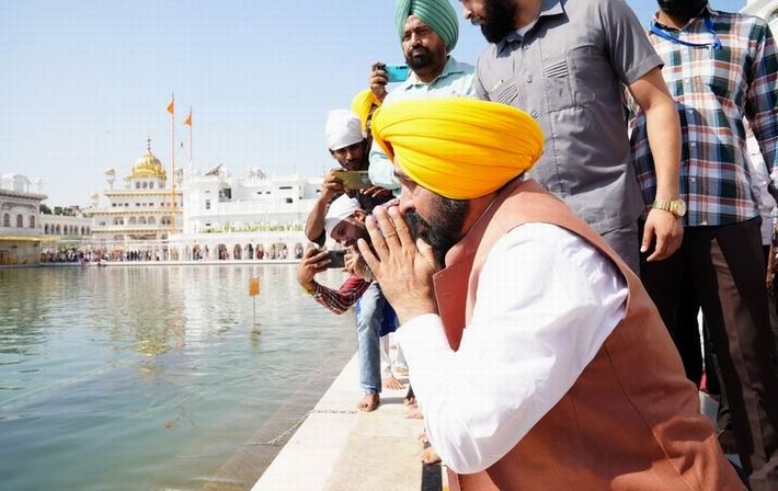 ਮੁੱਖ ਮੰਤਰੀ ਭਗਵੰਤ ਸਿੰਘ ਮਾਨ ਨੇ ਮੰਤਰੀਆਂ ਸਮੇਤ ਸ੍ਰੀ ਦਰਬਾਰ ਸਾਹਿਬ ਮੱਥਾ ਟੇਕਿਆ ਅਤੇ ਪੰਜਾਬ ਵਾਸੀਆਂ ਨੂੰ ਬੰਦੀ ਛੋੜ ਦਿਵਸ ਅਤੇ ਦੀਵਾਲੀ ਦੀ ਵਧਾਈ ਦਿੱਤੀ।ਇਸ ਦੌਰਾਨ ਮੁੱਖ ਮੰਤਰੀ ਨੇ ਸ੍ਰੀ ਅਕਾਲ ਤਖ਼ਤ ਸਾਹਿਬ ਦੇ ਜਥੇਦਾਰ ਗਿਆਨੀ ਹਰਪ੍ਰੀਤ ਸਿੰਘ ਨਾਲ ਮੁਲਾਕਾਤ ਵੀ ਕੀਤੀ।