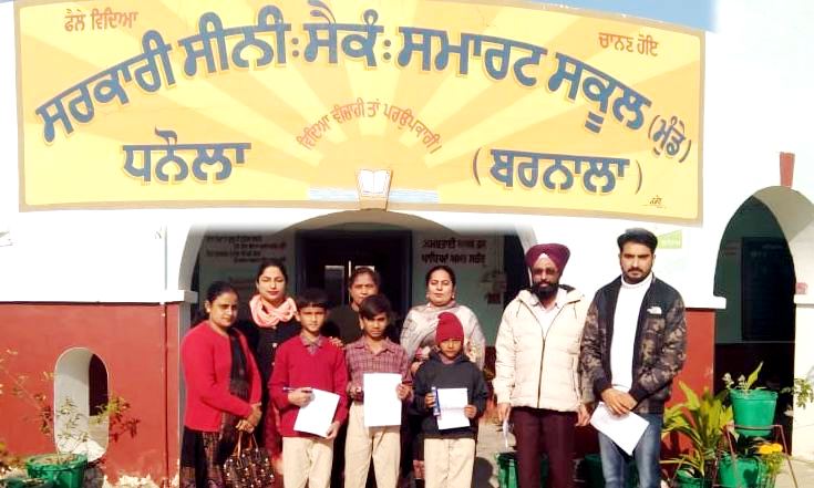 ਸੰਗਰੂਰ, 10 ਦਸੰਬਰ (ਜਗਸੀਰ ਲੌਂਗੋਵਾਲ) – ਸਰਕਾਰੀ ਸੀਨੀਅਰ ਸਕੈਂਡਰੀ ਸਮਾਰਟ ਸਕੂਲ (ਮੁੰਡੇ) ਧਨੋਲਾ ਜਿਲ੍ਹਾ ਬਰਨਾਲਾ ਵਿਖੇ ਪ੍ਰਿੰਸੀਪਲ ਸਟੇਟ ਐਵਾਰਡੀ