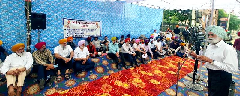 Amritsar, June 1(Punjab Post Bureau) – A massive joint protest under the banner of Joint Action Committee (JAC), comprising of Aided and Un-Aided Colleges Managements, Principals Associations of three State Universities, Punjab Chandigarh Colleges Teachers Union (PCCTU) was today organized at Khalsa College and Khalsa College for Women against the state government over its dictatorial attitude on centralized admission portal.