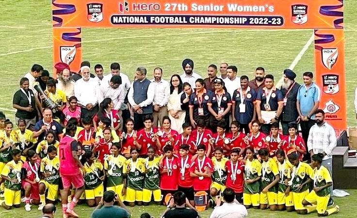 ਅਤੇ ਜ਼ਿਲ਼੍ਹਾ ਫੁੱਟਬਾਲ ਐਸੋਸੀਏਸ਼ਨ ਦੇ ਸਹਿਯੋਗ ਨਾਲ ਕਰਵਾਏ ਗਏ 27ਵੇਂ ਸਰਵ ਭਾਰਤੀ ਵੁਮੈਨ ਸੀਨੀਅਰ ਨੈਸ਼ਨਲ ਫੁੱਟਬਾਲ ਚੈਂਪੀਅਨਸ਼ਿਪ ਦੇ ਫਾਈਨਲ ਵਿੱਚ ਤਾਮਿਲਨਾਡੂ ਦੀ ਟੀਮ ਨੇ ਹਰਿਆਣਾ ਨੂੰ 1 ਦੇ ਮੁਕਾਬਲੇ 2 ਗੋਲਾਂ ਨਾਲ ਮਾਤ ਦੇ ਕੇ ਚੈਂਪੀਅਨ ਦਾ ਖਿਤਾਬ ਆਪਣੇ ਨਾਮ ਕੀਤਾ।