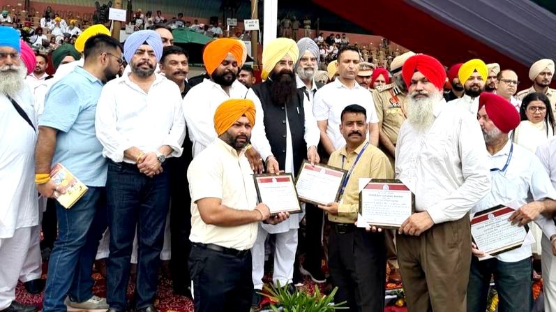 15 ਅਗਸਤ ਨੂੰ ਸੁਤੰਤਰਤਾ ਦਿਵਸ ਮੌਕੇ ਗੁਰੂ ਨਾਨਕ ਸਟੇਡੀਅਮ ਵਿਖੇ ਪ੍ਰਸੰਸਾ ਪੱਤਰ ਦੇ ਕੇ ਉਨਾਂ ਨੂੰ ਸਨਮਾਨਿਤ ਕਰਦੇ ਹੋਏ ਗੁਰਮੀਤ ਸਿੰਘ ਖੁਡੀਆਂ ਖੇਤੀਬਾੜੀ ਮੰਤਰੀ, ਹਲਕਾ ਪੱਛਮੀ ਵਿਧਾਇਕ ਜਸਬੀਰ ਸਿੰਘ ਸੰਧੂ, ਡਿਪਟੀ ਕਮਿਸ਼ਨਰ ਘਨਸ਼ਾਮ ਥੋਰੀ ਅਤੇ ਪੁਲਿਸ ਕਮਿਸ਼ਨਰ ਰਣਜੀਤ ਸਿੰਘ ਢਿੱਲੋਂ।