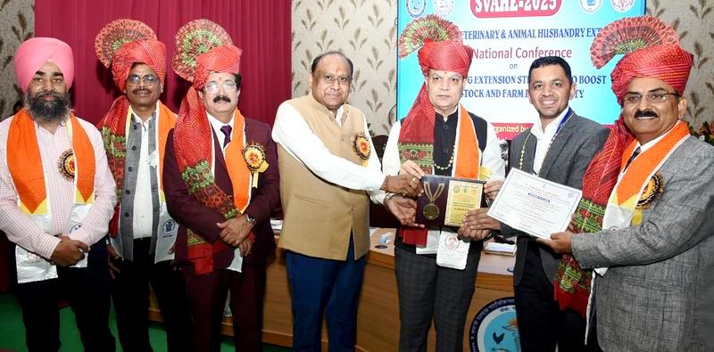 ਅੰਮ੍ਰਿਤਸਰ, 16 ਦਸੰਬਰ (ਸੁਖਬੀਰ ਸਿੰਘ ਖੁਰਮਣੀਆਂ) – ਖਾਲਸਾ ਕਾਲਜ ਆਫ਼ ਵੈਟਰਨਰੀ ਐਂਡ ਐਨੀਮਲ ਸਾਇੰਸਜ਼ ਦੇ ਪਿ੍ਰੰਸੀਪਲ ਡਾ. ਹਰੀਸ਼ ਕੁਮਾਰ ਵਰਮਾ ਨੇ ਵੈਟਰਨਰੀ ਕਾਲਜ ਮਹੂ ਵਿਖੇ ਨਾਨਾਜੀ ਦੇਸ਼ਮੁਖ ਵੈਟਰਨਰੀ ਸਾਇੰਸਜ਼ ਯੂਨੀਵਰਸਿਟੀ (ਐਨ.ਡੀ.ਵੀ.ਐਸ.ਯੂ) ਜਬਲਪੁਰ ਦੀ ਅਗਵਾਈ ਹੇਠ ਆਯੋਜਿਤ ਸੋਸਾਇਟੀ ਫਾਰ ਵੈਟਰਨਰੀ ਐਂਡ ਐਨੀਮਲ ਹਸਬੈਂਡਰੀ ਐਕਸਟੈਂਸ਼ਨ (ਐਸ.ਵੀ.ਏ.ਐਚ.ਈ) ਦੇ 7ਵੇਂ ਰਾਸ਼ਟਰੀ ਸੰਮੇਲਨ ਦੌਰਾਨ ‘ਇੰਟੈਗ੍ਰੇਟਿੰਗ ਐਕਸਟੈਂਸ਼ਨ ਸਟਰੈਟਿਜੀਜ਼ ਟੂ ਬੂਸਟ ਲਾਈਵਸਟਾਕ ਐਂਡ ਫਾਰਮ ਪ੍ਰੋਡਕਟਿਵਟੀ’ ਵਿਸ਼ੇ ’ਤੇ ਮਹੱਤਵਪੂਰਨ ਭਾਸ਼ਣ ਦਿੱਤਾ।ਡਾ. ਵਰਮਾ ਦੀ 2020 ਤੋਂ ਨੈਸ਼ਨਲ ਸੋਸਾਇਟੀ ਫਾਰ ਵੈਟਰਨਰੀ ਐਂਡ ਐਨੀਮਲ ਹਸਬੈਂਡਰੀ ਐਕਸਟੈਂਸ਼ਨ ਦੇ ਪ੍ਰਧਾਨ ਹਨ।ਕਾਲਜ ਦੇ ਐਮ.ਡੀ ਡਾ. ਐਸ.ਕੇ ਨਾਗਪਾਲ ਨੇ ਸਮੂਹ ਪੁਰਸਕਾਰ ਜੇਤੂਆਂ ਨੂੰ ਵਧਾਈ ਦਿੰਦਿਆਂ ਦੱਸਿਆ ਕਿ ਸਾਲ 2026 ’ਚ ਰਾਜਸਥਾਨ ਦੇ ਬੀਕਾਨੇਰ ਦੇ ਰਾਜੂਵਾਸ ਵਿਖੇ ਕਾਨਫਰੰਸ ਆਯੋਜਿਤ ਕੀਤੀ ਜਾਵੇਗੀ।