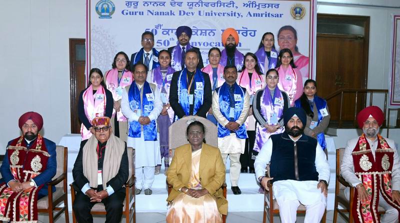 ਅੰਮ੍ਰਿਤਸਰ, 15 ਜਨਵਰੀ (ਸੁਖਬੀਰ ਸਿੰਘ ਖੁਰਮਣੀਆਂ) – ਗੁਰੂ ਨਾਨਕ ਦੇਵ ਯੂਨੀਵਰਸਿਟੀ ਨੇ ਆਪਣੀ 50ਵੀਂ ਗੋਲਡਨ ਜੁਬਲੀ ਕਨਵੋਕੇਸ਼ਨ ਵੱਡੇ ਉਤਸ਼ਾਹ ਅਤੇ ਅਕਾਦਮਿਕ ਸ਼ਾਨ ਨਾਲ ਸਫਲਤਾਪੂਰਵਕ ਆਯੋਜਿਤ ਕੀਤੀ। ਇਹ ਇਤਿਹਾਸਕ ਅਕਾਦਮਿਕ ਜਸ਼ਨ ਗੋਲਡਨ ਜੁਬਲੀ ਕਨਵੈਨਸ਼ਨ ਸੈਂਟਰ, ਗੁਰੂ ਨਾਨਕ ਦੇਵ ਯੂਨੀਵਰਸਿਟੀ ਕੈਂਪਸ ਵਿਖੇ ਧੂਮ-ਧਾਮ ਨਾਲ ਮਨਾਇਆ ਗਿਆ।