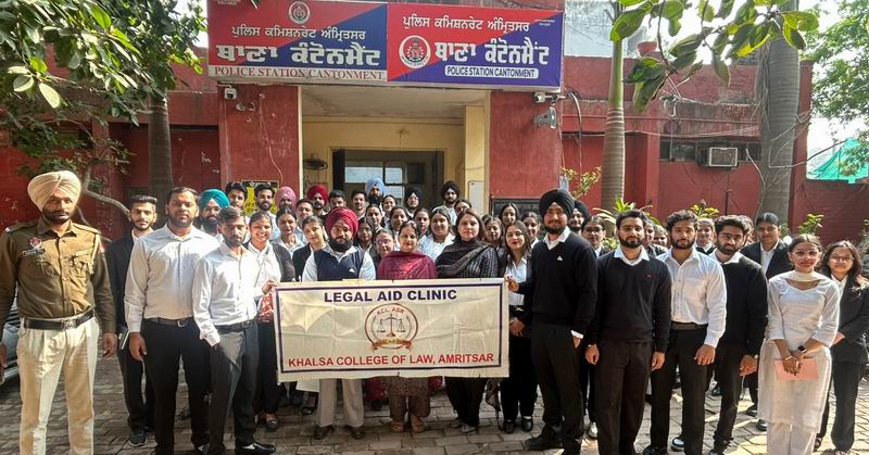 ਅੰਮ੍ਰਿਤਸਰ, 28 ਫਰਵਰੀ (ਸੁਖਬੀਰ ਸਿੰਘ ਖੁਰਮਣੀਆਂ) – ਖ਼ਾਲਸਾ ਕਾਲਜ ਆਫ਼ ਲਾਅ ਦੇ ਵਿਦਿਆਰਥੀਆਂ ਨੇ ਪੁਲਿਸ ਬਲਾਂ ਦੇ ਕੰਮਕਾਜ਼ ਨੂੰ ਸਮਝਣ ਲਈ ਆਪਣੇ ਸਿਖਲਾਈ ਪ੍ਰੋਗਰਾਮ ਦੇ ਹਿੱਸੇ ਵਜੋਂ ਪੁਲਿਸ ਸਟੇਸ਼ਨ ਛਾਉਣੀ, ਅੰਮਿ੍ਰਤਸਰ ਦਾ ਵਿੱਦਿਅਕ ਦੌਰਾ ਕੀਤਾ।ਬੀ.ਏ ਐਲ.ਐਲ.ਬੀ (ਐਫ.ਵਾਈ.ਆਈ.ਸੀ) 10ਵੇਂ ਸਮੈਸਟਰ, ਬੀ.ਕਾਮ. ਐਲ.ਐਲ.ਬੀ (ਐਫ.ਵਾਈ.ਆਈ.ਸੀ) 10ਵੇਂ ਸਮੈਸਟਰ ਅਤੇ ਐਲ.ਐਲ.ਬੀ (ਟੀ.ਵਾਈ.ਸੀ) 6ਵੇਂ ਸਮੈਸਟਰ ਦੇ ਵਿਦਿਆਰਥੀਆਂ ਨੇ ਹਿੱਸਾ ਲਿਆ।