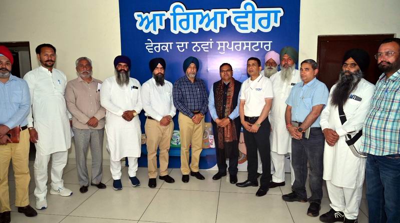 ਅੰਮ੍ਰਿਤਸਰ, 4 ਅਪ੍ਰੈਲ (ਸੁਖਬੀਰ ਸਿੰਘ) – ਨੈਸ਼ਨਲ ਡੇਅਰੀ ਡਿਵੈਲਪਮੈਂਟ ਬੋਰਡ (ਐਨ.ਡੀ.ਡੀ.ਬੀ) ਦੇ ਚੇਅਰਮੈਨ ਡਾ. ਮਨੇਸ਼ ਸ਼ਾਹ ਵਲੋਂ ਅੱਜ ਵੇਰਕਾ ਮਿਲਕ ਪਲਾਂਟ ਅੰਮ੍ਰਿਤਸਰ ਦਾ ਦੌਰਾ ਕੀਤਾ ਗਿਆ।ਮਿਲਕ ਯੂਨੀਅਨ ਅੰਮ੍ਰਿਤਸਰ ਦੇ ਸਮੂਹ ਬੋਰਡ ਆਫ ਡਾਇਰੈਕਟਰਜ਼ ਅਤੇ ਮੈਨੇਜਮੈਂਟ ਵੱਲੋਂ ਉਹਨਾਂ ਦਾ ਸਵਾਗਤ ਕੀਤਾ ਗਿਆ।