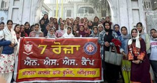 ਅੰਮ੍ਰਿਤਸਰ, 9 ਜਨਵਰੀ (ਸੁਖਬੀਰ ਸਿੰਘ ਖੁਰਮਣੀਆਂ) – ਖ਼ਾਲਸਾ ਕਾਲਜ ਫ਼ਾਰ ਵੂਮੈਨ ਦੇ ਐਨ.ਐਸ.ਐਸ ਵਿਭਾਗ ਵਲੋਂ 7 ਰੋਜ਼ਾ ਕੈਂਪ ਲਗਾਇਆ ਗਿਆ।ਕੈਂਪ ਦਾ ਉਦਘਾਟਨ ਖ਼ਾਲਸਾ ਯੂਨੀਵਰਸਿਟੀ ਦੇ ਅਕਾਦਮਿਕ ਡੀਨ ਡਾ. ਸੁਰਿੰਦਰ ਕੌਰ ਵੱਲੋਂ ਕੀਤਾ ਗਿਆ।ਵਲੰਟੀਅਰਾਂ ਨੂੰ ਕੈਂਪ ਦੇ ਉਦੇਸ਼ ਅਤੇ ਉਨ੍ਹਾਂ ਦੇ ਸਮਾਜ ਪ੍ਰਤੀ ਫ਼ਰਜ਼ ਅਤੇ ਜ਼ਿੰਮੇਵਾਰੀ ਤੋਂ ਜਾਣੂ ਕਰਵਾਇਆ ਗਿਆ ਅਤੇ ਸਮਾਜ ਕਲਿਆਣ ਪ੍ਰਤੀ ਪ੍ਰਤੀਬੱਧਤਾ ਲਈ ਸਹੁੰ ਚੁੱਕਾਈ ਗਈ। ਡਾ. ਸੁਰਿੰਦਰ …