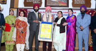 ਡਾ. ਮਹਿਲ ਸਿੰਘ ‘ਪੰਜਾਬੀ ਨਾਇਕ’ ਐਵਾਰਡ ਨਾਲ ਸਨਮਾਨਿਤ ਅੰਮ੍ਰਿਤਸਰ, 1 ਦਸੰਬਰ (ਸੁਖਬੀਰ ਸਿੰਘ ਖੁਰਮਣੀਆਂ) – ਖਾਲਸਾ ਯੂਨੀਵਰਸਿਟੀ ਅਤੇ ਜਗਤ ਪੰਜਾਬੀ ਸਭਾ, ਕੈਨੇਡਾ ਦੇ ਸਹਿਯੋਗ ਨਾਲ ਇੰਟਰ ਕਾਲਜ ਭਾਸ਼ਣ ਮੁਕਾਬਲਾ ਕਰਵਾਇਆ ਗਿਆ।ਜਿਸ ਵਿੱਚ ਜਗਤ ਪੰਜਾਬੀ ਸਭਾ ਕੈਨੇਡਾ ਦੇ ਚੇਅਰਮੈਨ ਅਜੈਬ ਸਿੰਘ ਚੱਠਾ ਅਤੇ ’ਵਰਸਿਟੀ ਦੇ ਉਪ ਕੁਲਪਤੀ ਡਾ. ਮਹਿਲ ਸਿੰਘ ਨੇ ਮੁੱਖ ਮਹਿਮਾਨ ਵਜਂ ਸ਼ਿਰਕਤ ਕੀਤੀ।ਖਾਲਸਾ ’ਵਰਸਿਟੀ ਦੇ ਰਜਿਸਟਰਾਰ ਡਾ. ਖੁਸ਼ਵਿੰਦਰ …